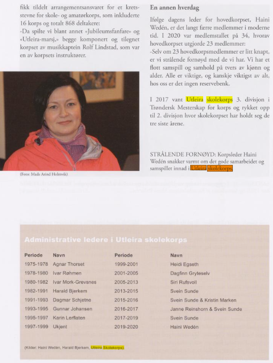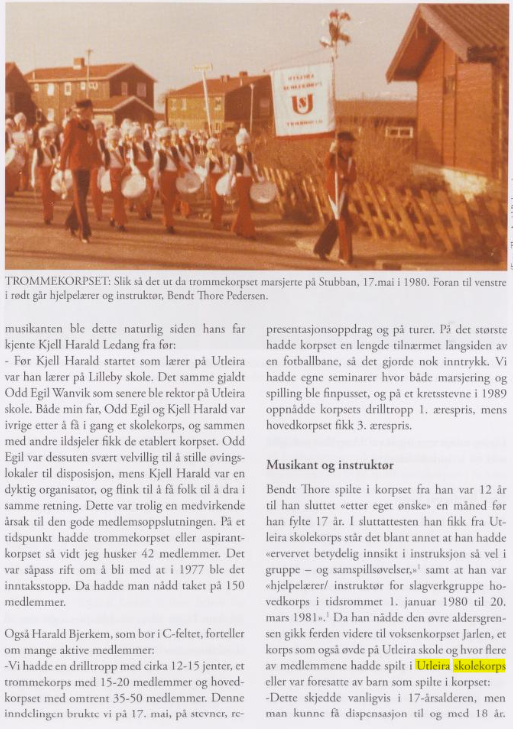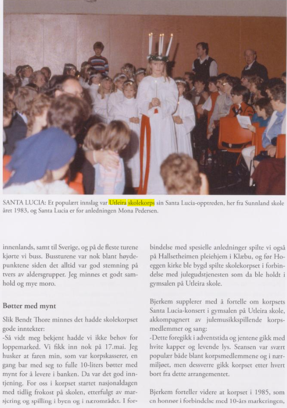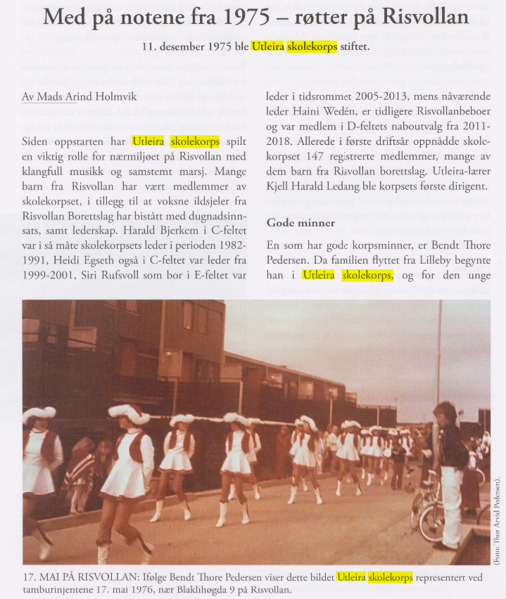 Utleira skolekorps blir dannet i desember 1975. Til venstre ser vi et utklipp fra Adresseavisen 12. desember, 1975.